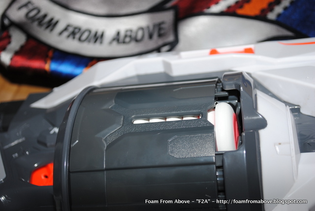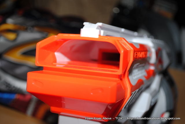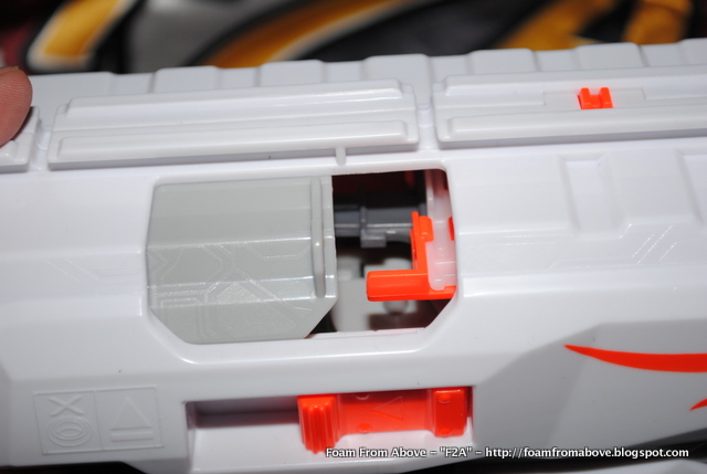 Should the blaster get jammed, there’s a disc release and the jam door (both pictured) I believe Mr. K at AFON pointed out this is the first/only Vortex blaster to have one(?):