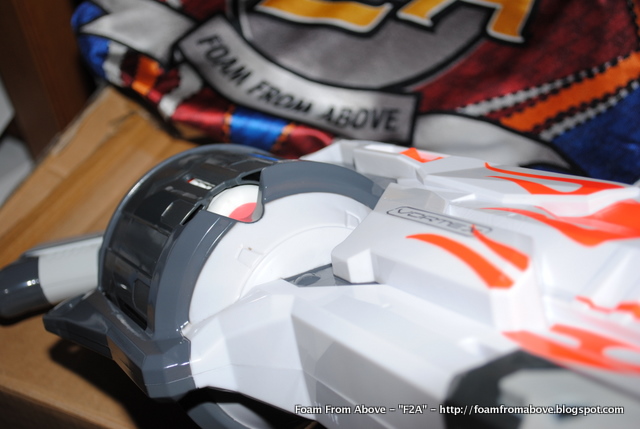 And it works for me. I honestly very rarely go “WHOA” on a blaster’s paintjob but this does look cool all the same. The main body is very vibrant with the white and orange accents, and the grey just works with it in my opinion.