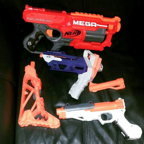 Nerf 2015 (some of it)… have you got yours? SoloBlastJanuary 12, 2015nerf, new 2015, sharpfire, slingstrike Post navigation PreviousNext My Nerf 2015 pickups so far: Nerf Sharpfire, Slingstrike, Mega Cycloneshock. Still need to get my Flipfury, and waiting to find a Crossbolt. Share this: Share on X (Opens in new window) X Share on Facebook (Opens in new window) Facebook Like Loading... Related
