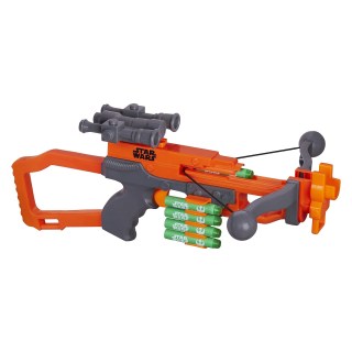 The fight to restore order to the galaxy comes home with the first-ever STAR WARS NERF blasters! Battle against the First Order in the style of your favorite Wookiee with this blaster that features a removable scope, real crossbow action and five NERF darts that fire up to 65 feet!”