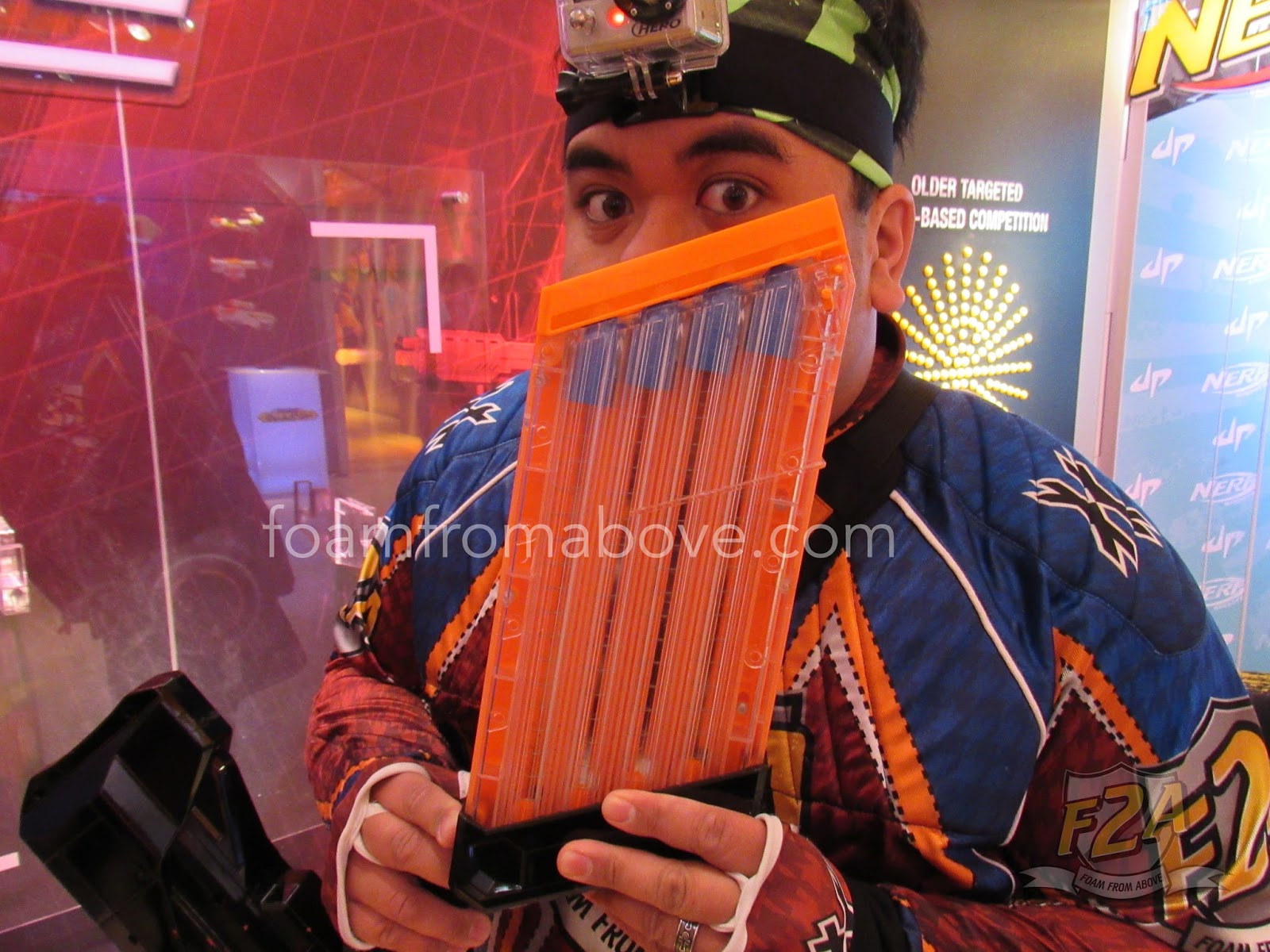 All that being said, is it worth the $80? A lot will be said of its “war practicality” and “usefulness” in a stock Nerf war, but I liked it just fine. It turned me into a big(ger) moving target, cut my mobility a bit, and made aiming a bit of a challenge, but the range, the capacity, the full auto, and the aggro (people made sure to keep an eye on where I was, or if they heard my motors whirring to make sure I wasn’t near them) was worth the tradeoff for me, and gosh darnit I just had a lot of fun with it! Of all the high-end items I saw at Toy Fair, this was definitely a “buzz-worthy” blaster in my book, and the one I came away wanting the most of the whole lineup from that trip. At this price it might make you cringe, but in this case I’d endorse the cost as being worth it for this foam launching monstrosity.
