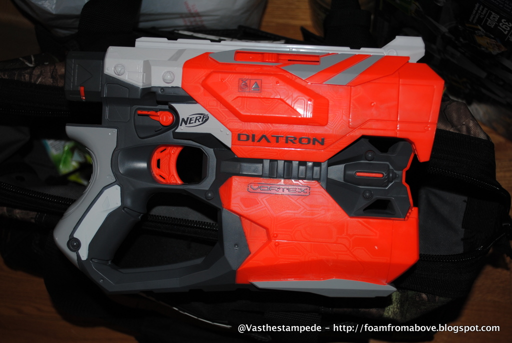 So after a long journey that started at New York Toy Fair 2013 to July 2013 I finally saw a full production Nerf Vortex Revonix 360.