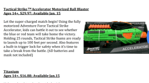 Priced again at just under the cost of other brands, Dart Zone sent over a press release of their new offerings coming to 2018. Under Walmart’s “Adventure Force” brand, the “Tactical Strike” line is where to find these new blasters. I’m not sure what effect this will have on future releases, whether these will be for Walmart only (although in the case of the Powerball, Tactical Strike will have its own paint scheme) but for now I don’t have any info that shows these will be anywhere else.