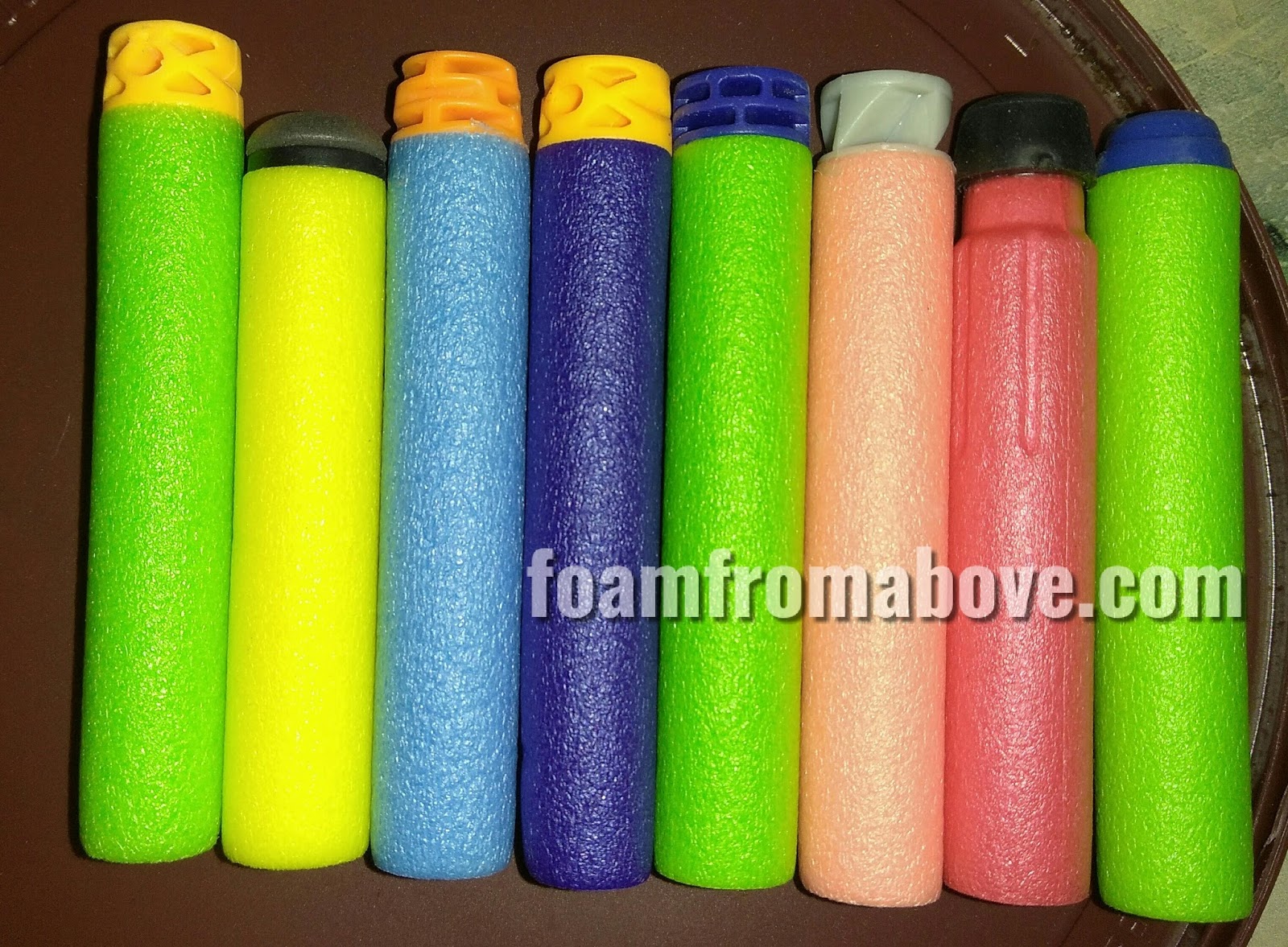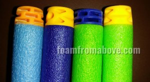 The Adventure Force waffle darts are in the center, green with blue tip. Zuru darts, while slightly cheaper, are still shorter than most darts.