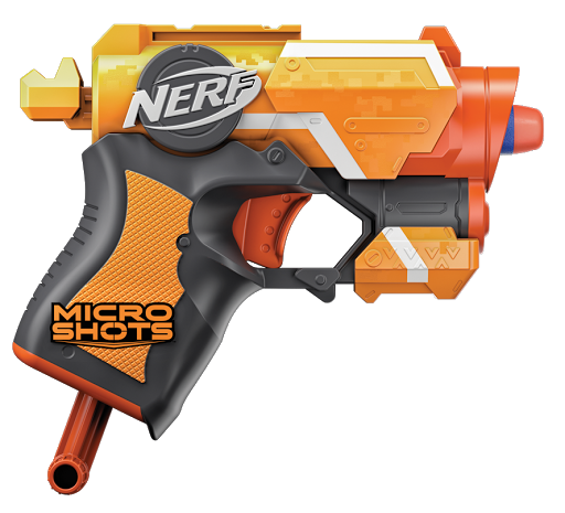 Blast into big fun with the NERF MICROSHOTS SERIES Collectible Assortment! MICROSHOTS blasters capture the iconic look of the original NERF blasters fans know and love, but in a micro, scrunched-down fun style all their own. Simply load, prime, and pull the trigger for big fun in a small package. This one-shot blaster is as fun to collect as it is to blast! Series includes one micro-sized version of the NERF N-STRIKE ELITE FIRESTRIKE blaster, NERF N-STRIKE ELITE STRONGARM blaster, and ZOMBIE STRIKE HAMMERSHOT blaster. Each package includes one blaster and two Elite darts. Available at most major toy retailers nationwide and HasbroToyShop.com.