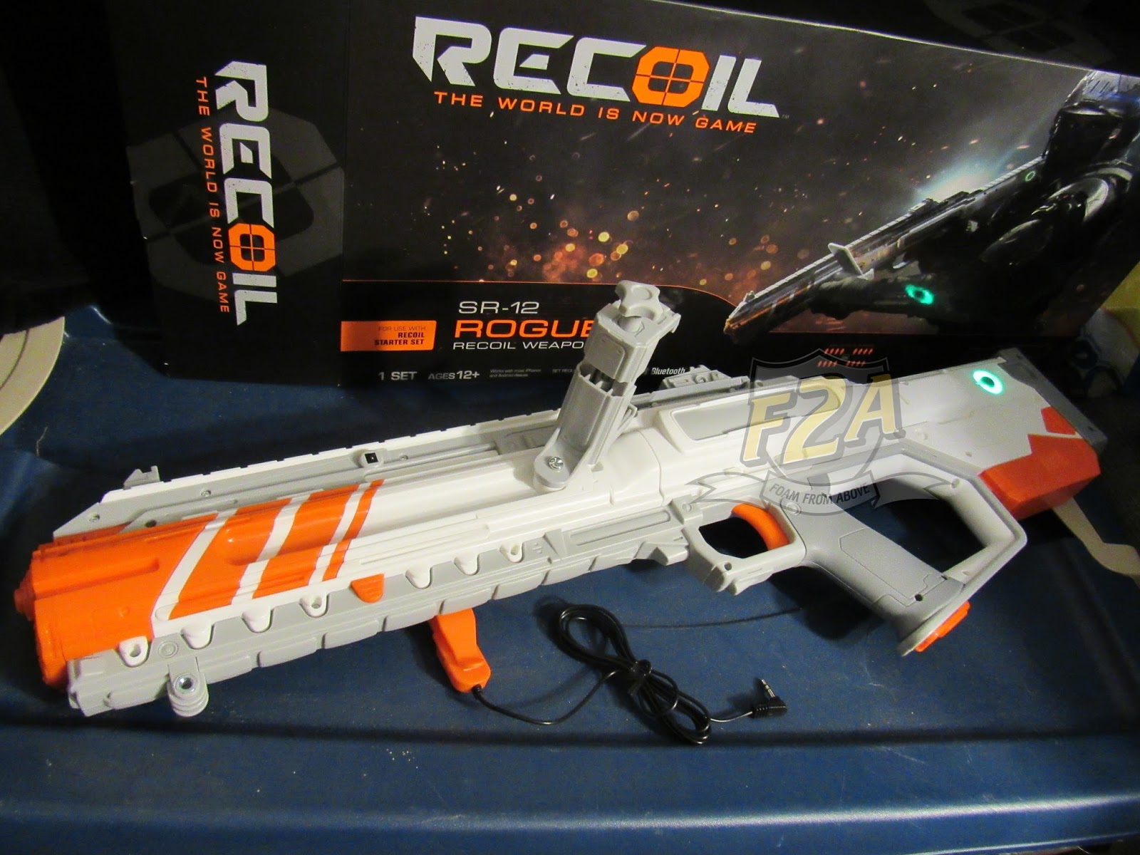 I opted out of using headphones for indoor play (in the basement we used it wasn’t like we couldn’t hear each other) but I could still hear my friend taunting me through the Recoil blasters when I was on the hunt. Indoors the speakers worked pretty well, and over the din of the muzzle flash and noise from the Spitfire and Rogue units we used there wasn’t a lot of need to pay attention to what was being said. However, grenades, coming under attack, all those warnings still happened and when I did hear them they were much appreciated. The readout of health, ammo, and who killed me with what item (grenade or weapon.)